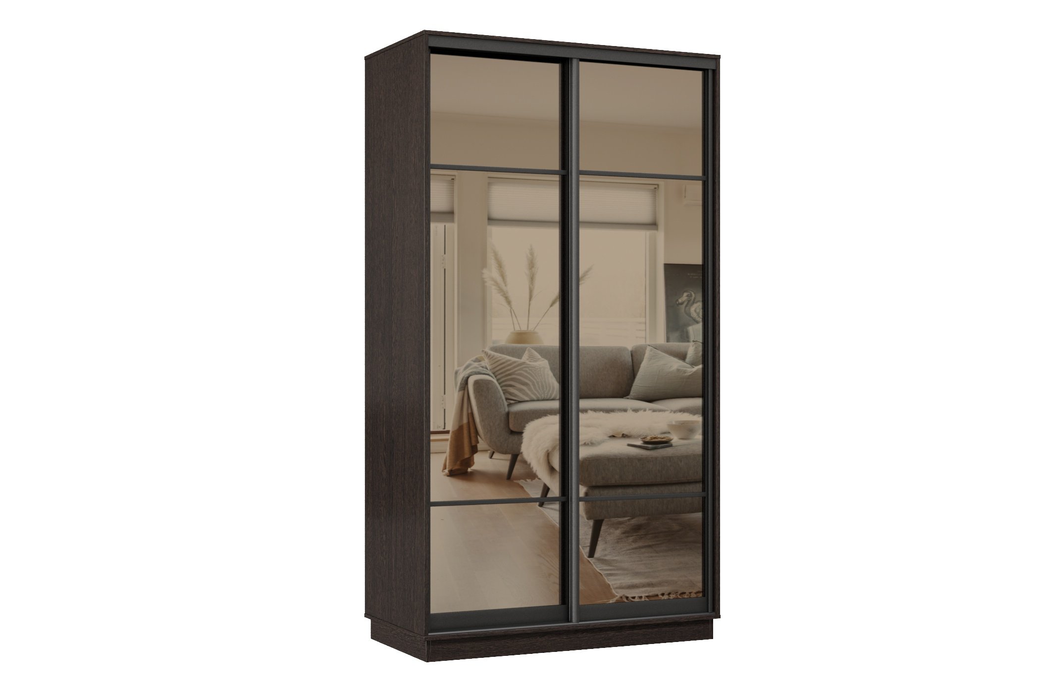 Отзывы о Столплит Шкаф-купе Премьер 04 (11ЗБ;11ЗБ) фасады зеркало бронза/двухдверный/Профиль чёрный муар Венге