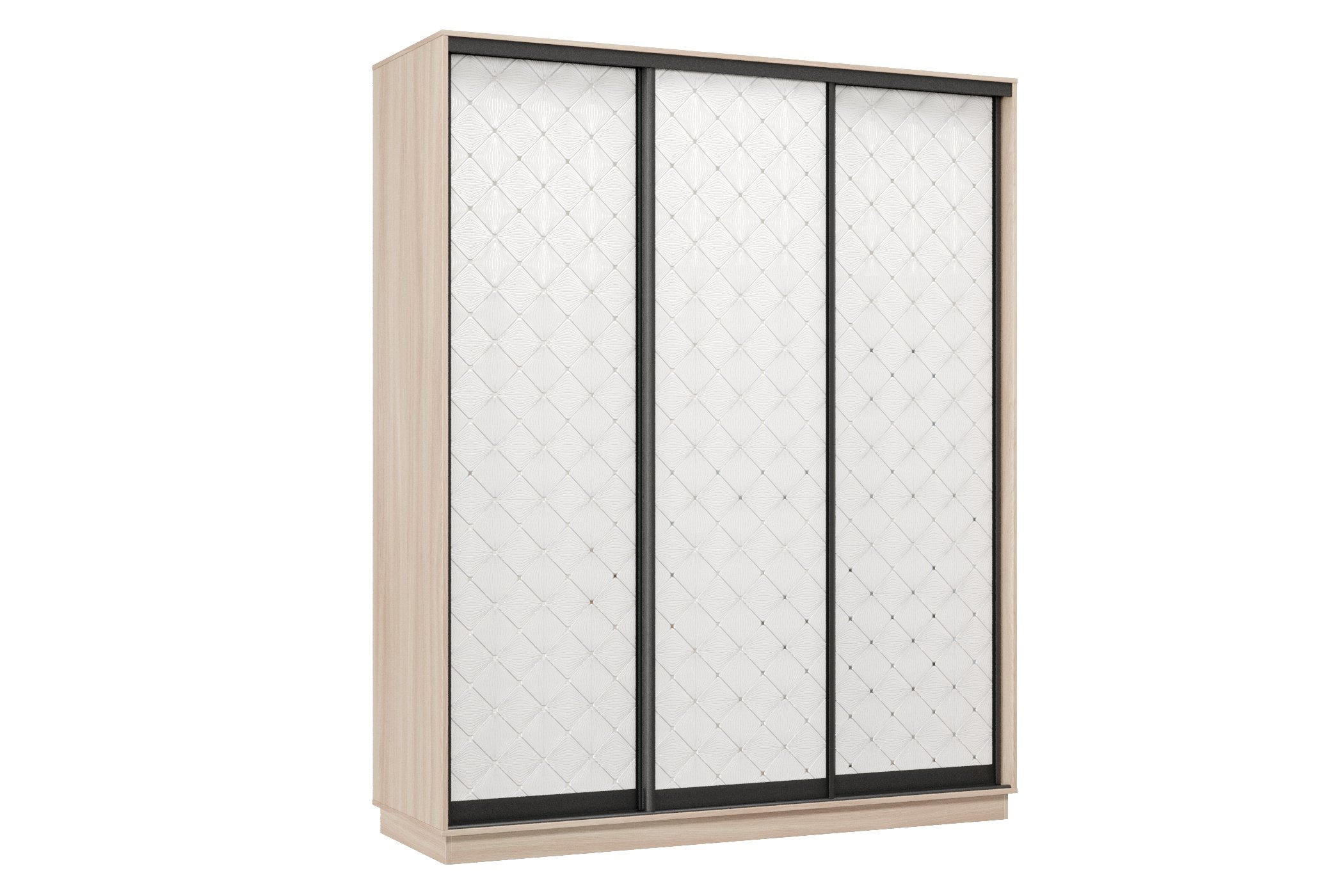 Шкаф-купе Премьер 23 (01РБ;01РБ;01РБ) фасады ромб белый/трёхдверный/Профиль чёрный муар (Ясень шимо светлый) Код I0000374236