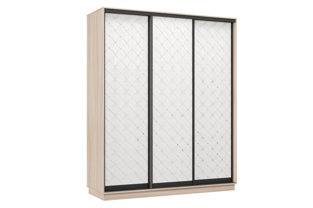 Отзывы о Столплит Шкаф-купе Премьер 23 (01РБ;01РБ;01РБ) фасады ромб белый/трёхдверный/Профиль чёрный муар Ясень шимо светлый