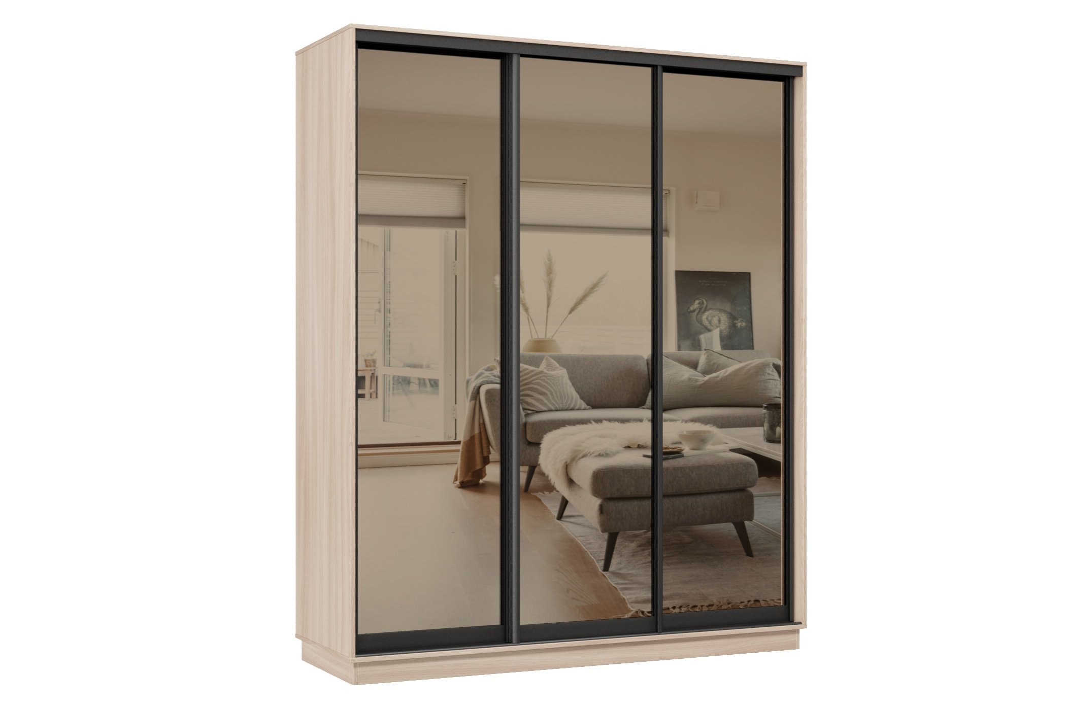 Отзывы о Столплит Шкаф-купе Премьер 23 (01ЗБ;01ЗБ;01ЗБ) фасады зеркало бронза/трёхдверный/Профиль чёрный муар Ясень шимо светлый