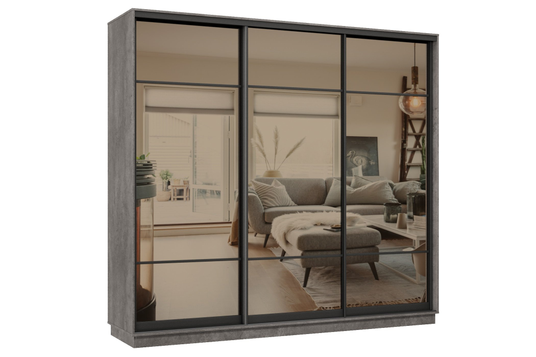 Отзывы о Столплит Шкаф-купе Премьер 33 (11ЗБ;11ЗБ;11ЗБ) фасады зеркало бронза/трёхдверный/Профиль чёрный муар Бетон