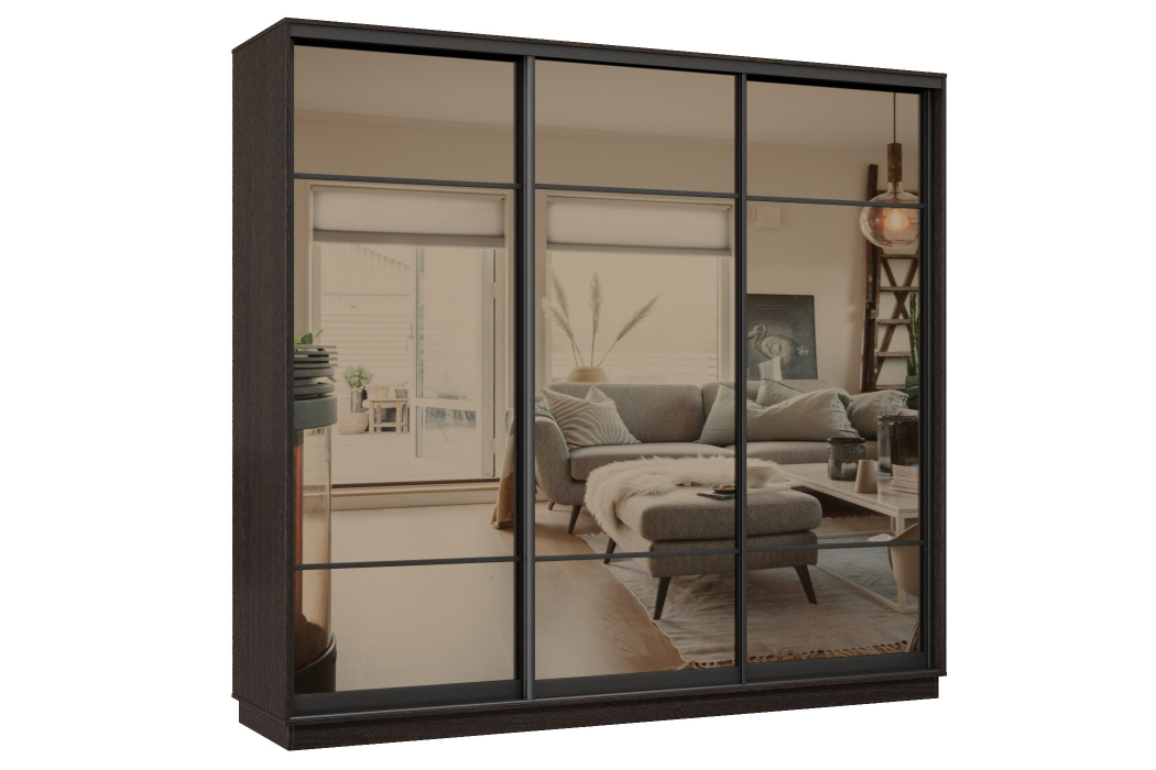 Шкаф-купе Премьер 57 (11ЗБ;11ЗБ;11ЗБ) фасады зеркало бронза/трёхдверный/Профиль чёрный муар (Венге)
