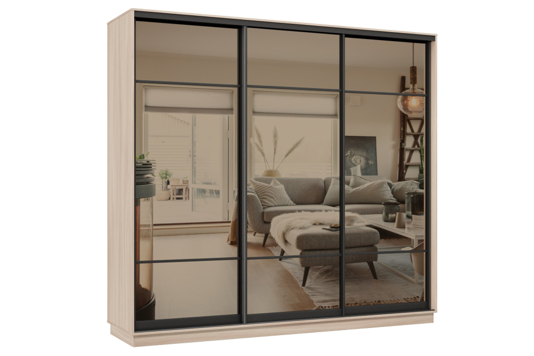 Отзывы о Столплит Шкаф-купе Премьер 57 (11ЗБ;11ЗБ;11ЗБ) фасады зеркало бронза/трёхдверный/Профиль чёрный муар Ясень шимо светлый