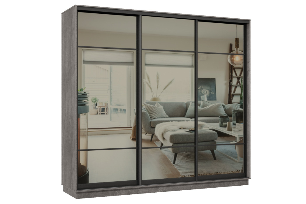 Отзывы о Столплит Шкаф-купе Премьер 58 (11ЗГ;11ЗГ;11ЗГ) фасады зеркало графит/трёхдверный/Профиль чёрный муар Бетон
