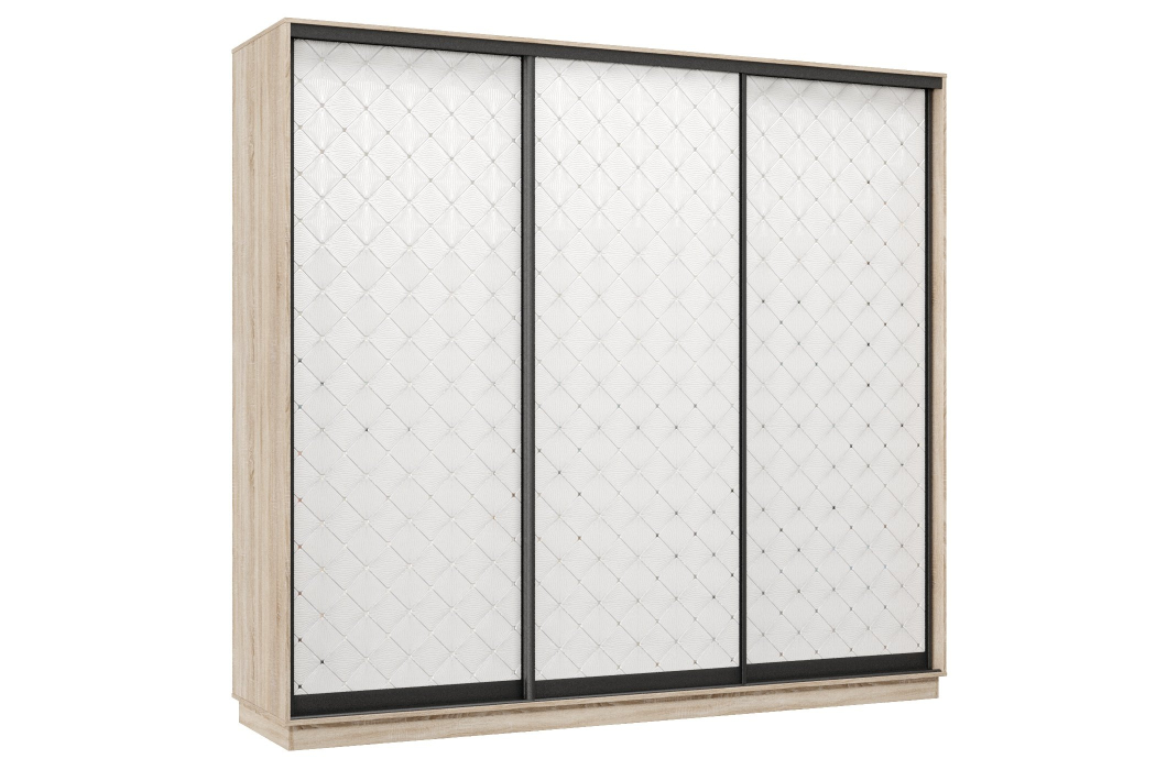 Шкаф-купе Премьер 60 (01РБ;01РБ;01РБ) фасады ромб белый/трёхдверный/Профиль чёрный муар (Дуб сонома) Код I0000374670