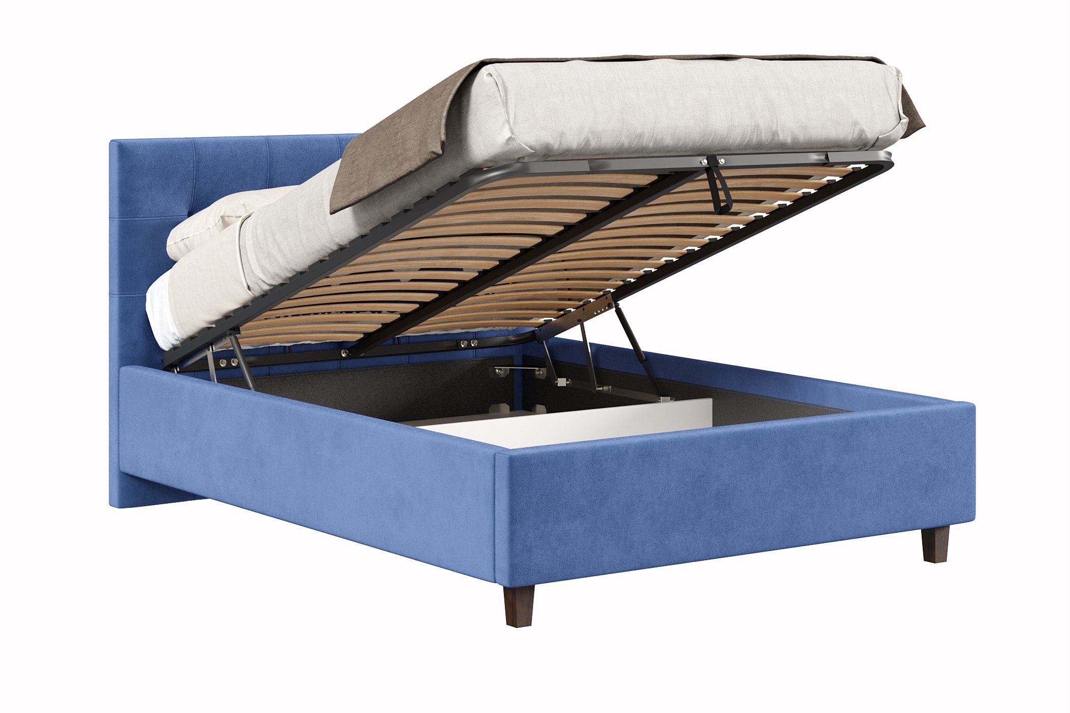 Кровать Турин 1400 с подъёмным механизмом, велюр (Синий)
