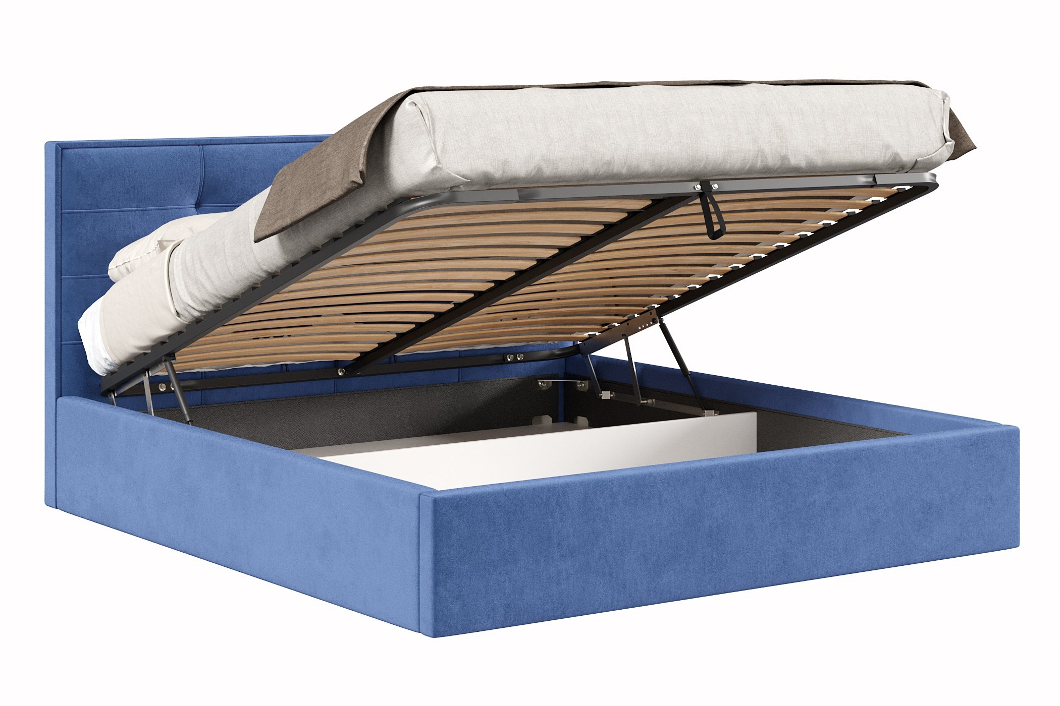 Кровать Римини 1800 с подъёмным механизмом, велюр (Синий)