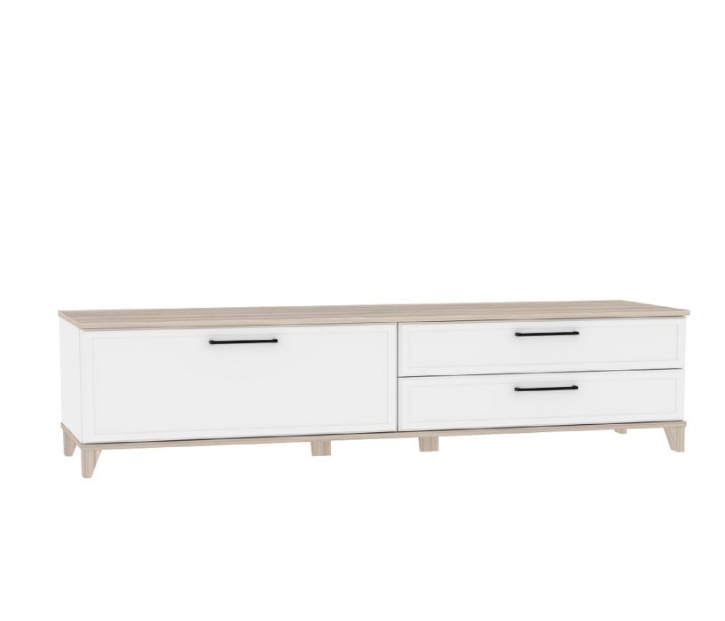 Ни одна современная гостиная не обходится без ТВ-зоны. Тумба под телевизор Аурелио 3 сочетает в себе уникальные черты классической мебели в современном исполнении, а также максимальную функциональность. Модуль имеет 2 выкатных ящика на направляющих плавного выдвижения и откидную створку, за которой скрывается закрытая ниша.