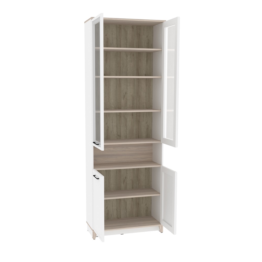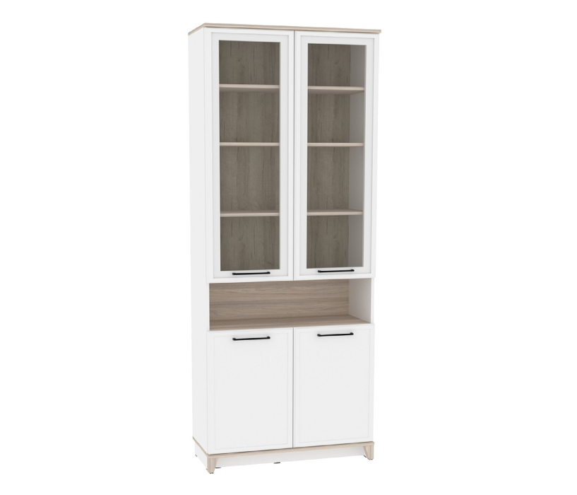 Коллекция Аурелио – воплощение лучших черт классики в современном исполнении. Корпус мебели выполнен из высококлассного ЛДСП, фасад – МДФ в профиле. Рамочные фасады выглядят изысканно в сочетании со стеклом и металлическими черными ручками. Книжный шкаф Аурелио 7 за счет ширины в 80 см вместит в себя разноплановые вещи: книги и другую печатную литературу, сервиз, предметы декора, комнатные растения и все то, что нужно хранить в гостиной.