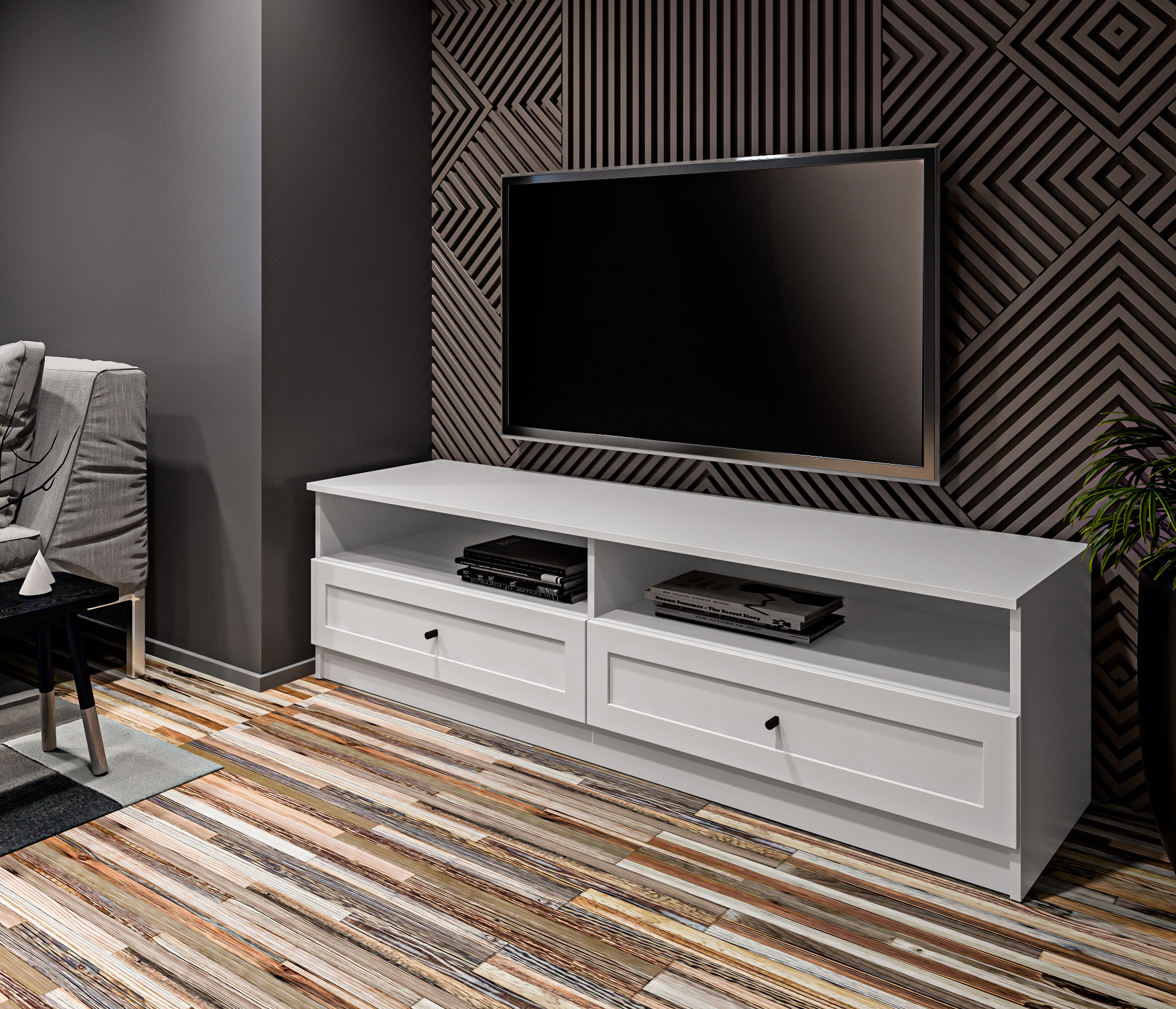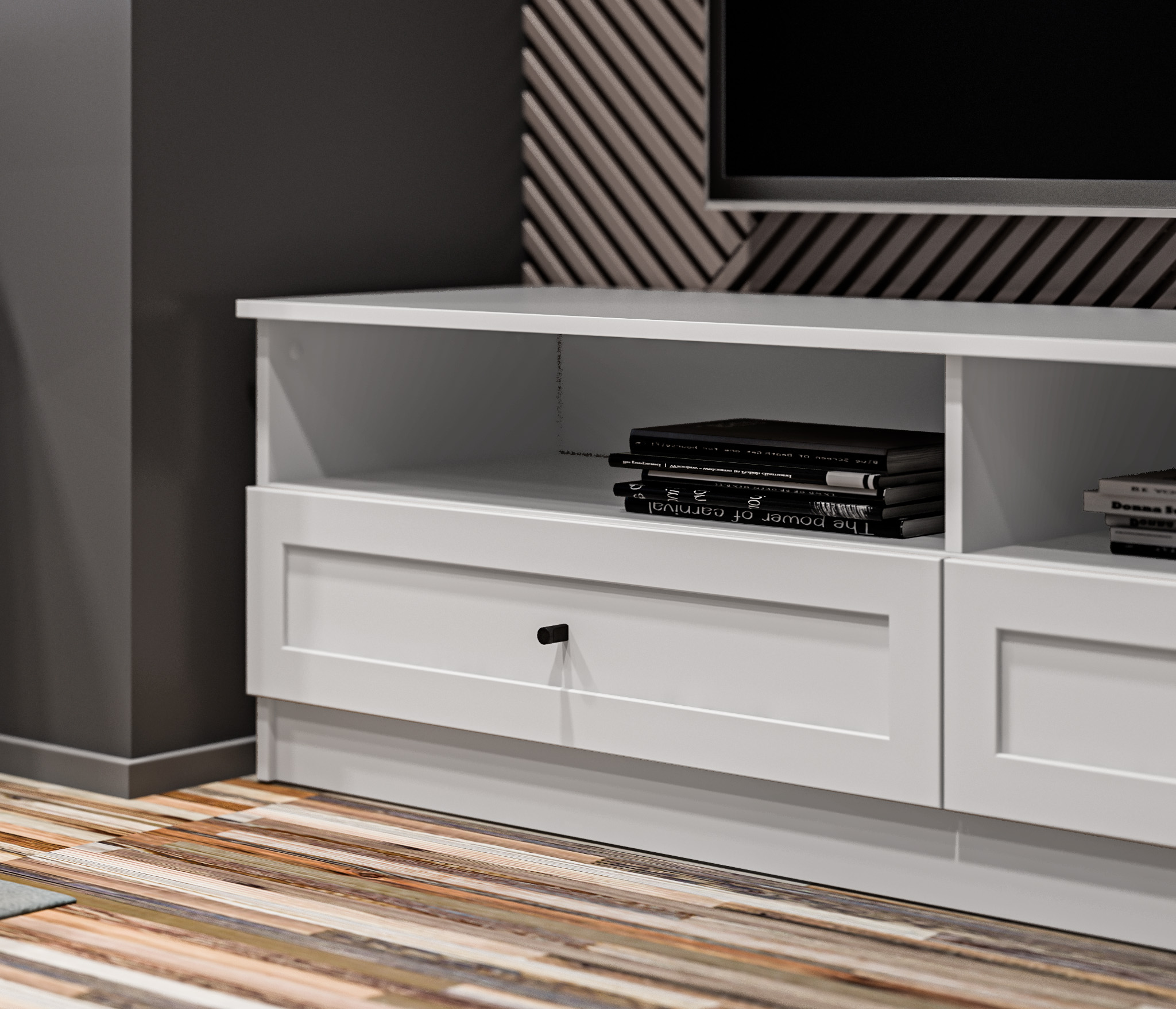 Продуманные детали делают использование тумбы максимально удобным: шариковые направляющие обеспечивают плавное выдвижение ящика.