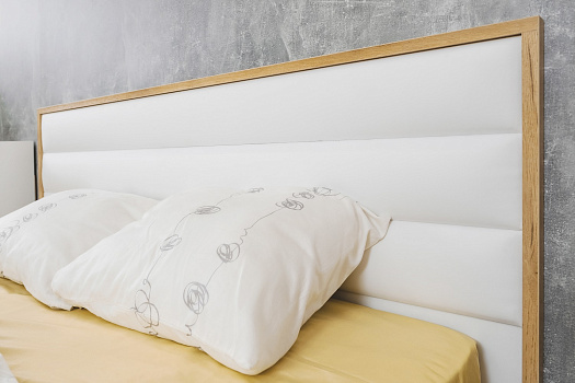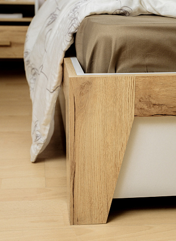 Светлая и теплая модульная коллекция Айрис выполнена в скандинавском стиле в декоре белый/дуб золотистый. Оптимальное сочетание белого цвета с древесной текстурой наполнит пространство уютом и украсит интерьер Вашей современной спальни. Мебель изготовлена из высококлассного ЛДСП класса эмиссии Е1, что гарантирует безопасность в процессе ежедневной эксплуатации. А кромка ПВХ по периметру изделий защитит их от деформации и продлит срок службы. Разноплановые модули позволят Вам без труда собрать идеальный комплект и рационально организовать пространство спальни. Например, комплект 1 состоит из двуспальной кровати 140х200, двух компактных прикроватных тумб, трехстворчатого шкафа с зеркалом и высокого комода. Зеркало в комплект не входит.