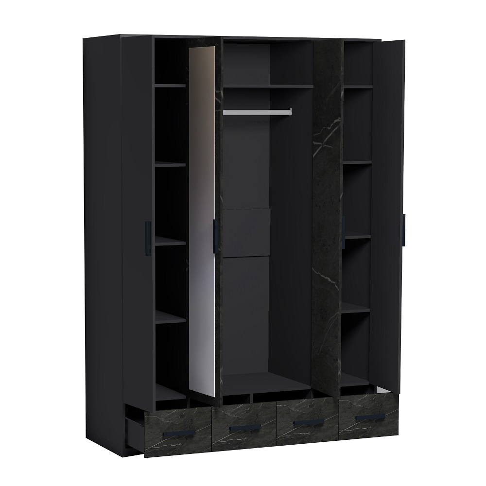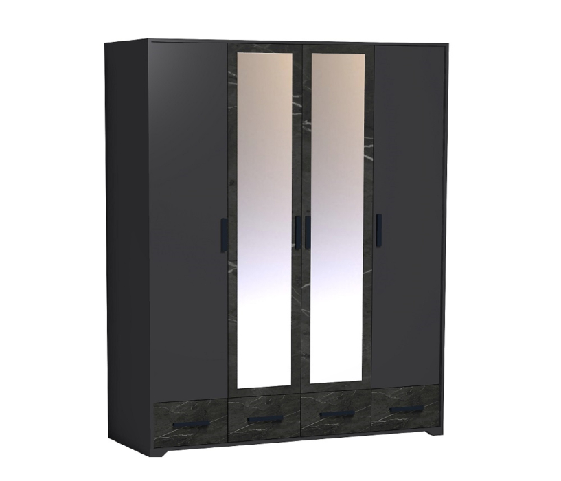 Хотите грамотно обустроить хранение в спальне? Вместительный четырехдверный шкаф из коллекции Айрис решит эту задачу. Продуманное до мелочей наполнение шкафа позволит Вам зонировать хранение одежды всех членов Вашей семьи. По бокам модуля имеется комплект полок для вещей в сложенном виде, центральная секция оснащена продольной штангой для деликатной одежды на плечиках и длинной полкой для коробок. Максимальная нагрузка на штангу - 40 кг. В четырех выкатных ящиках на шариковых направляющих плавного и бесшумного выдвижения хватит места для постельных принадлежностей, текстиля, белья и аксессуаров. Модуль крепится на стену за подвесы.