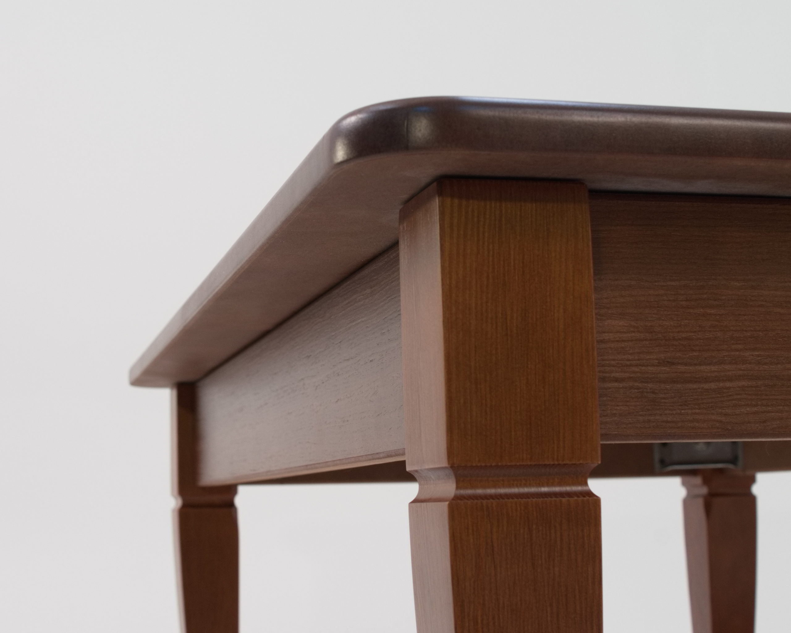 Столешница выполнена из из шпона и МДФ, материалов, отвечающих всем требованиям качества, экологичности и безопасности. Материалы прочны, износостойки, устойчивы к деформации, расслаиванию и рассыханию.