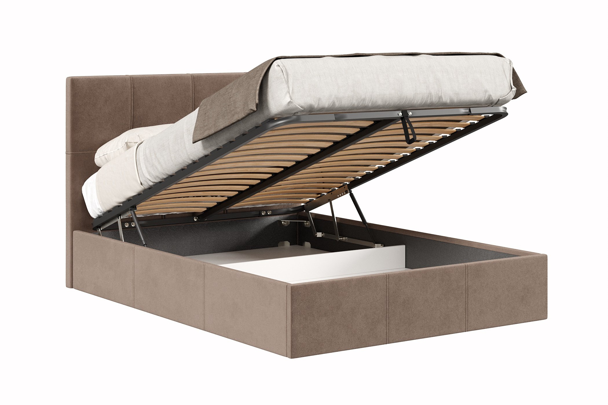 Кровать имеет нишу для хранения разных вещей, это очень удобно, если пространство в комнате не дает возможность поставить дополнительные шкафчики, либо полки.