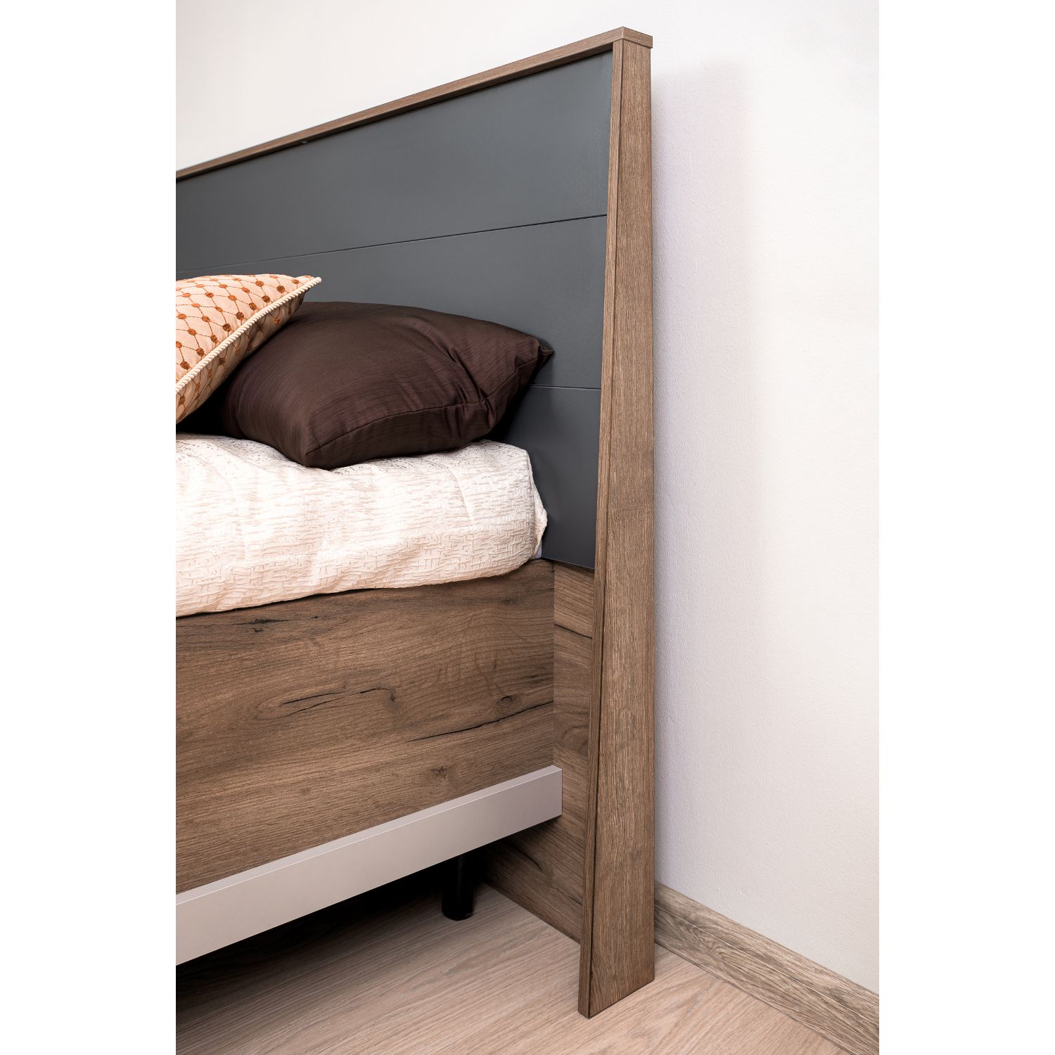 Двухспальная кровать шириной 160 см из коллекции Кара выглядит эффектно благодаря объёмному изголовью выразительной формы в обрамлении. Высокие точеные ножки подчеркивают направленность всей коллекции и удобны при уборке: позволяют роботу-пылесосу поддерживать порядок даже под кроватью.