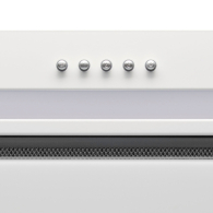 • Полностью встраиваемая вытяжка.Стильное сочетание закаленного стекла и окрашенной стали. Декоративный люк из закаленного стекла скрывает пятислойный алюминиевый, жироулавливающий фильтр с усиленной конструкцией