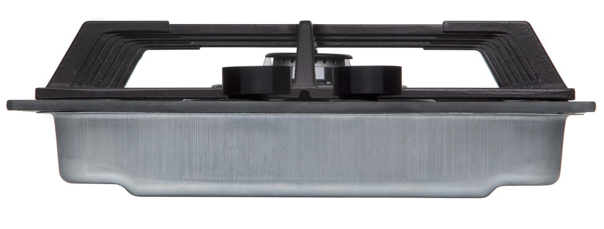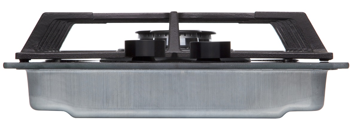 • Массивные чугунные решетки высокого качества исполнения. Удобная и безопасная система фиксации решеток на стекле. Множественные боковые опоры (подставки) и сплошное крестообразное соединение над всеми конфорками позволяют свободно и безопасно передвигать посуду по всей площади чугунной решетки