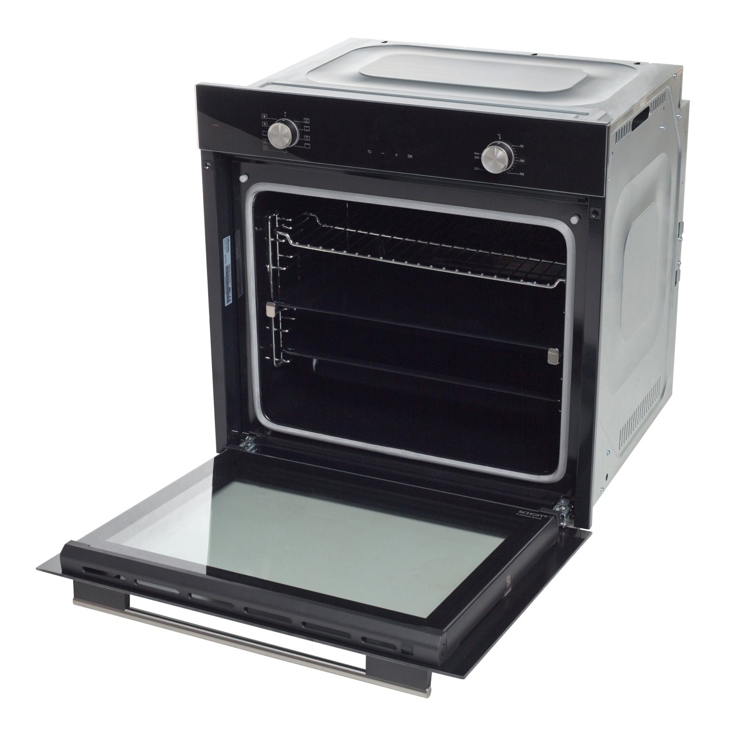 • Материал фасада: Узкая стеклянная панель управления + стеклянная дверца духовки из черного стекла от немецкого производителя Schott Ceran