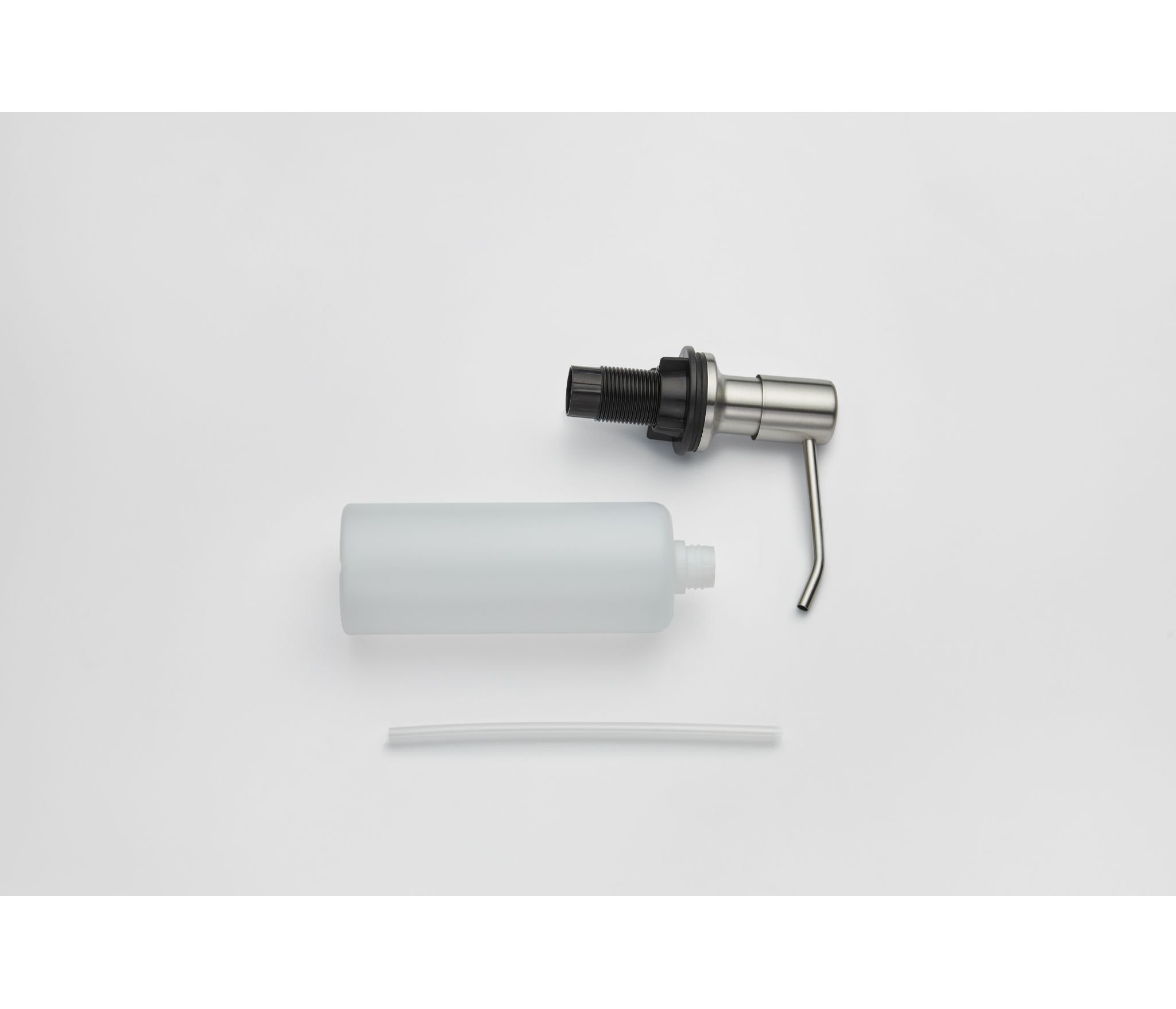 Дозатор встраивается в мойку или столешницу. Для монтажа дозатора необходимо сделать отверстие в мойке или столешнице.
