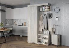 Организовать комфортное хранение в прихожей и соблюдать порядок поможет мини-прихожая Зара ПР-01. Модель выполнена в нейтральном декоре с древесным рисунком, что позволит разместить ее в любом интерьере, от классического до ультрасовременного. Модуль оснащен шкафом с выдвижной штангой, антресольной полкой для головных уборов, двумя открытыми полками для уличной и домашней обуви и надежными крючками для верхней одежды.