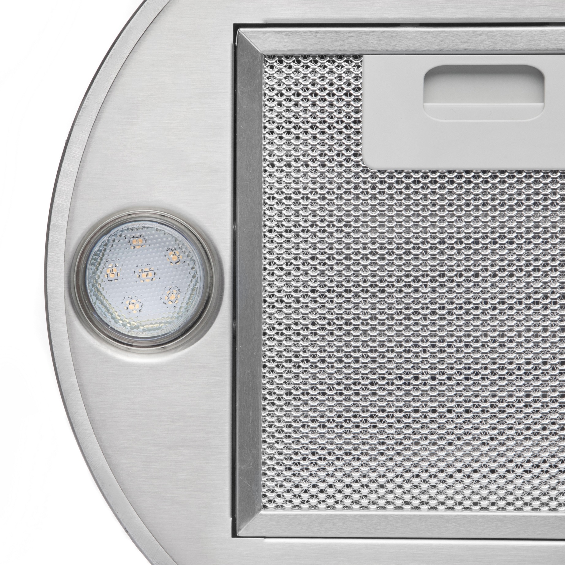 + Корпус вытяжки выполнен из высококачественной нержавеющей стали, обработан абсорбирующим слоем, поэтому его легко содержать в чистоте