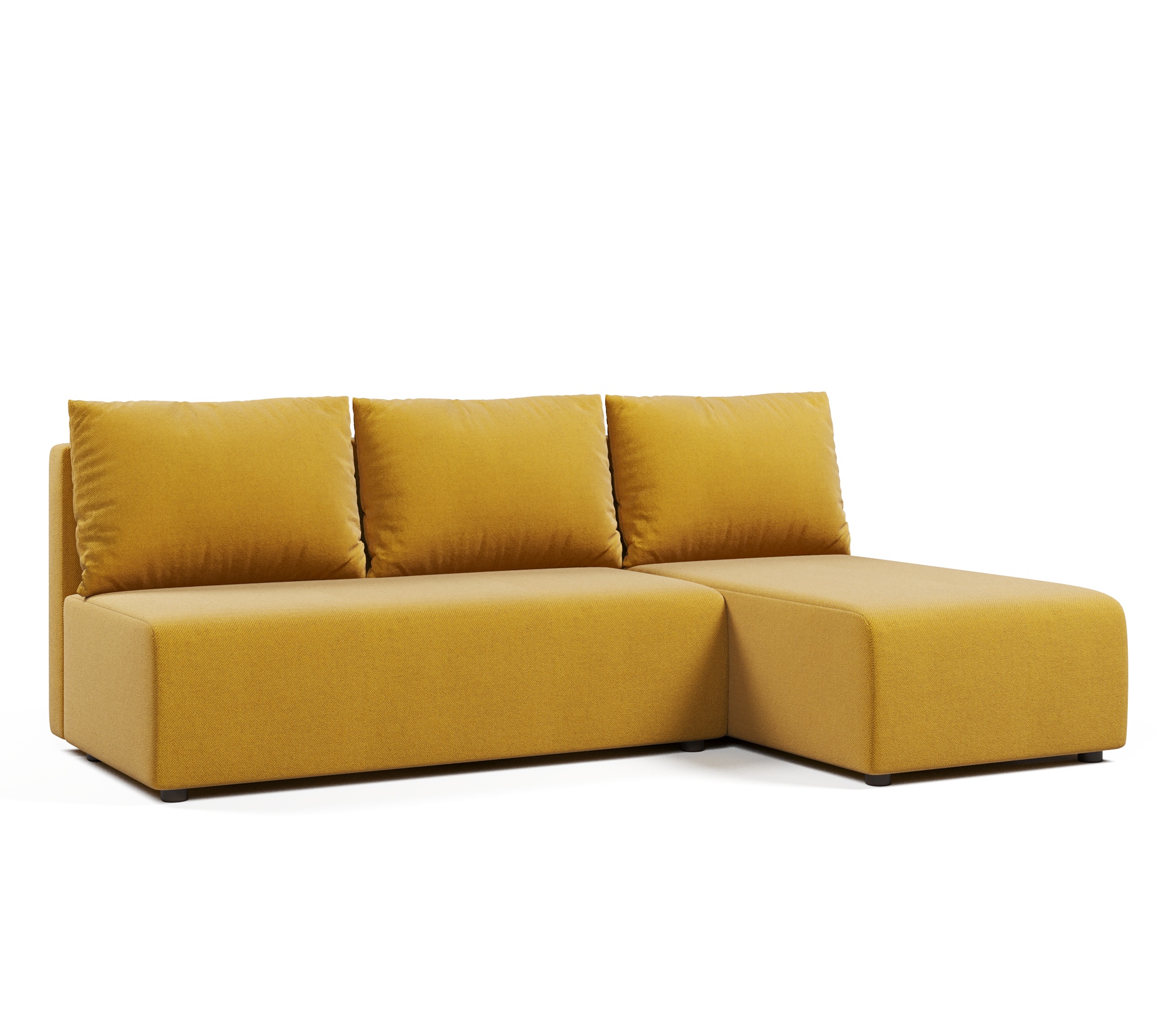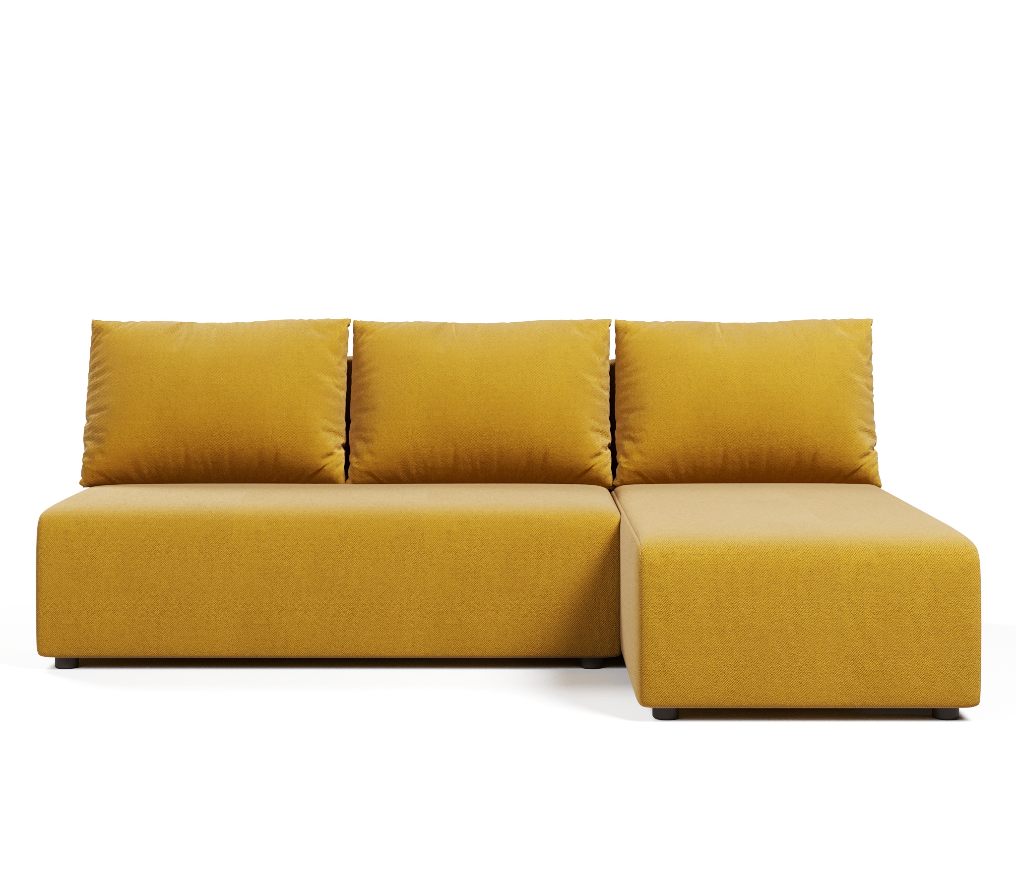 Угловой диван Каир выполнен в минималистичном стиле. Диван подойдет и для маленьких помещений, так как в модели отсутствуют подлокотники, которые сокращают пространство вокруг.