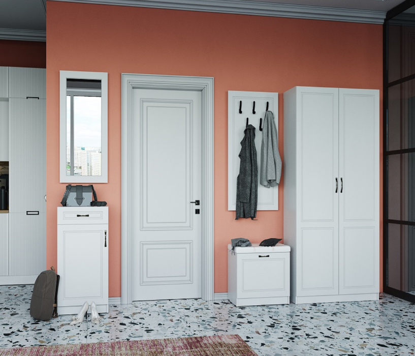 Модульная коллекция Апполия – идеальное решение для тех, кто любит классическую обстановку. Корпус мебели выполнен из ЛДСП в белом цвете с тиснением, фрезерованный фасад – из МДФ в пленке ПВХ. Уточненные ручки, надежная фурнитура и возможность укомплектовать шкафы карнизом – несомненные преимущества серии.