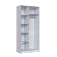 Двухстворчатый шкаф для одежды и белья, выполненный в классическом стиле. Наполнение шкафа - комплект удобных полок и стационарная хромированная штанга.