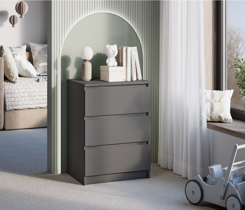 Лаконичный и стильный дизайн комода Симпл КМ-01 покорит ценителей минимализма. Три выдвижных ящика пригодятся для тех вещей, которые следует спрятать от лишних глаз: это одежда в сложенном виде, белье, аксессуары, книги, сезонные принадлежности и многое другое.