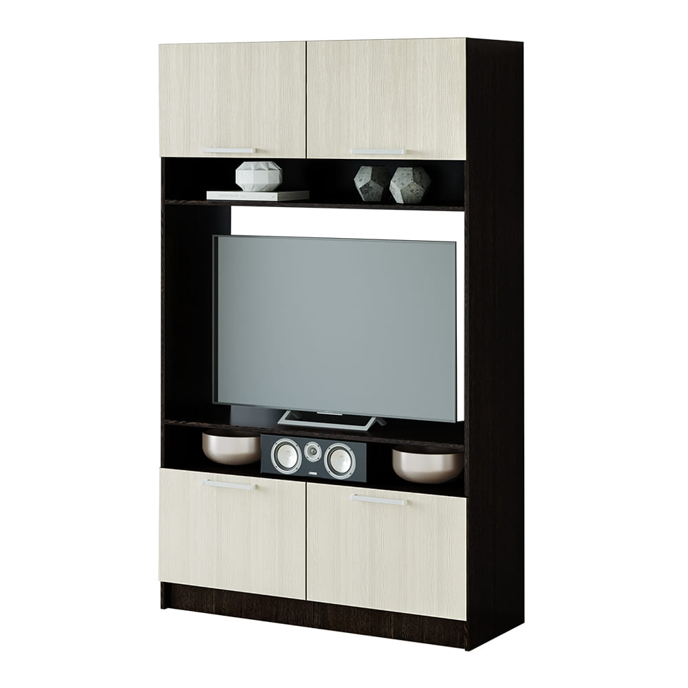 Коллекцию Симпл по достоинству оценят любители минималистичной, но качественной мебели с продуманным наполнением. Мебель выполнена в спокойных оттенках и гармонично дополнит любой по стилю современный интерьер. Продуманный модульный ряд позволяет поэкспериментировать с пространством и организовать продуманное хранение. Тумба под ТВ имеет 4 распашные створки, за которыми скрываются ниши для хранения.