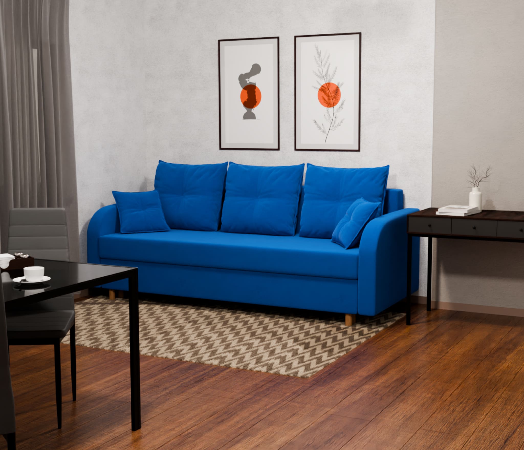 Прямой диван Генри,еврокнижка,велюр (Васильковый) Код I0000383666