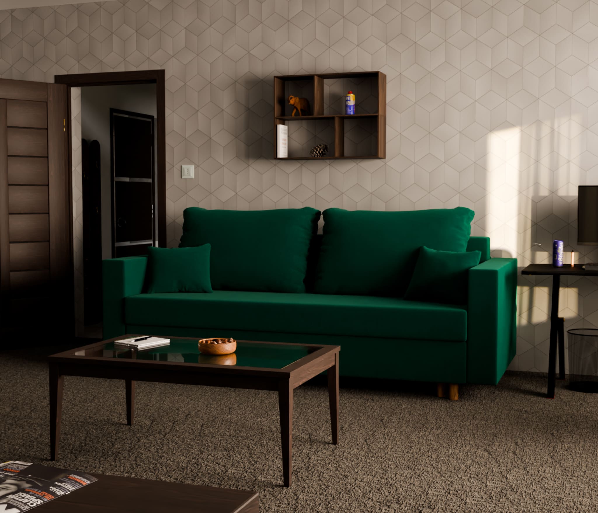 Диван оснащен съемными подушками, что позволяет легко адаптировать его под ваши потребности. Его высота и глубина обеспечивают комфортную посадку, а спальная зона позволяет разместить до двух человек.