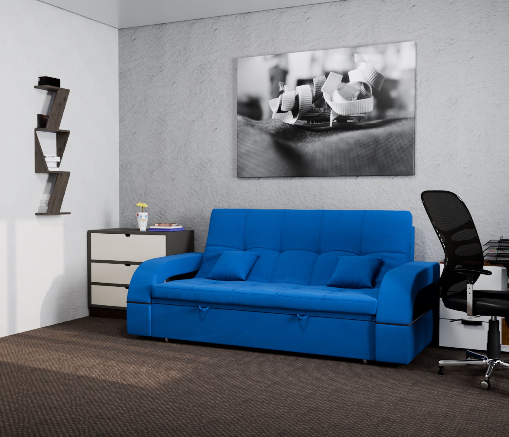 Спальное место имеет ширину 135 см и длину 185 см. Он предназначен для двух человек и имеет глубину сиденья 65 см. Максимальная нагрузка на диван составляет 280 кг.