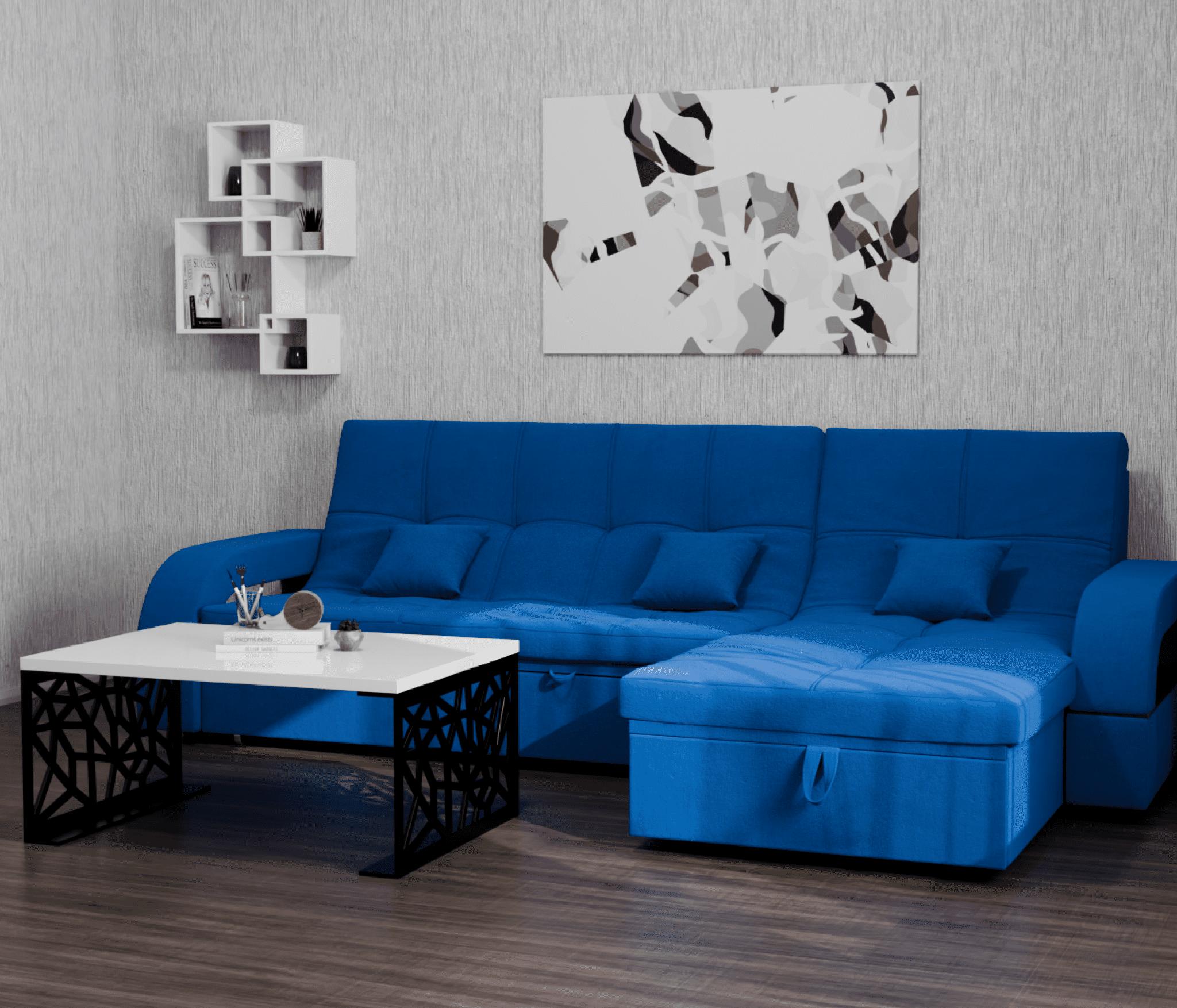 Он имеет высоту 97 см, ширину 268 см и глубину 175 см. Диван обладает универсальным расположением угла, что позволяет его использовать в любом помещении.