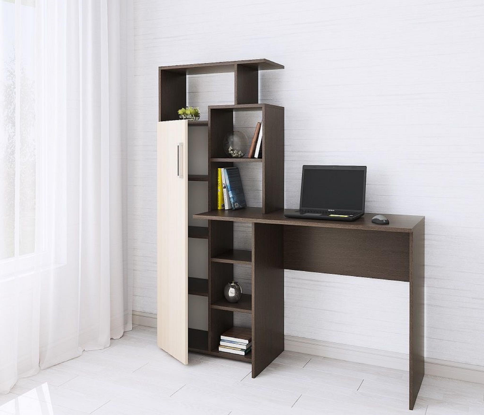 Компьютерный стол Квартет-7 отличается от аналогов оригинальной конструкцией и увеличенной вместимостью. Вы легко организуете продуманную зону хранения вещей, которые нужны во время работы: учебной литературы, канцелярии, сопутствующей ноутбуку техники. Всем вещам хватит места, и храниться они будут в полном порядке. Приятный декор, представленный сочетанием древесных пород, впишется в любой современный интерьер и добавит атмосферности.
